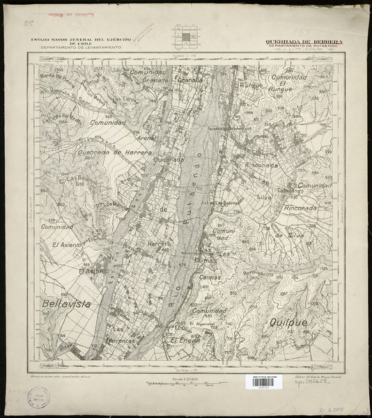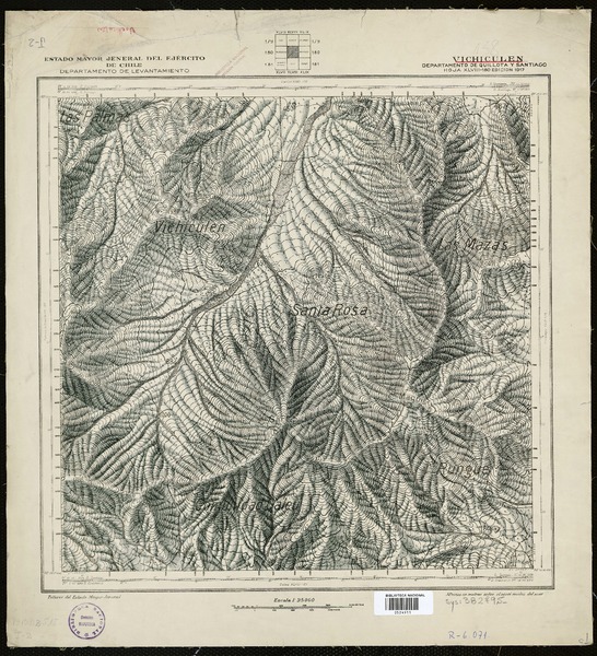 Vichiculén Departamento de Quillota y Santiago [material cartográfico] : Estado Mayor Jeneral del Ejército de Chile, Departamento de Levantamiento.