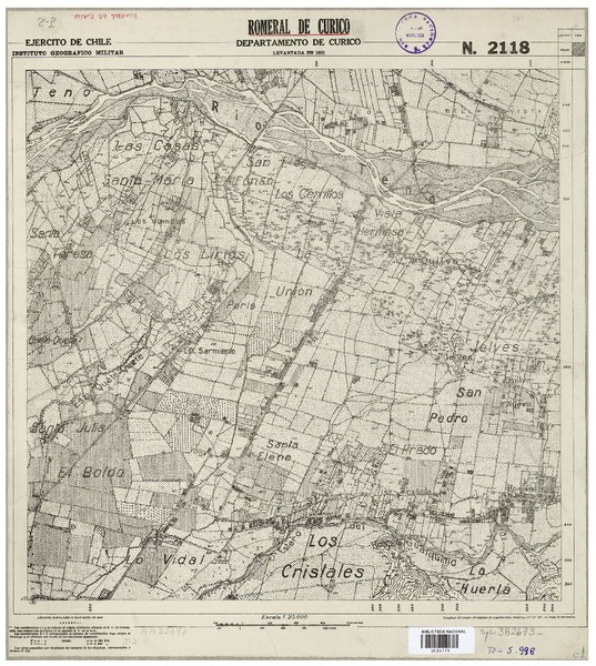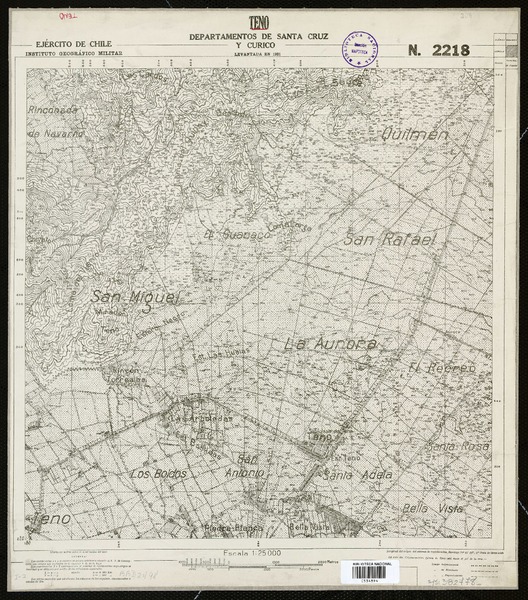 Teno Departamentos de San Cruz y Curicó[material cartográfico] : Ejército de Chile, Instituto Geográfico Militar.
