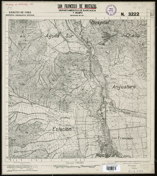 San Francisco de Mostazal Departamentos de Rancagua y Maipo [material cartográfico] : Ejército de Chile, Instituto Geográfico Militar.