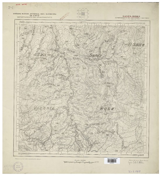 Santa Rosa Departamento de Los Andes i Santiago [material cartográfico] : Estado Mayor Jeneral del Ejército de Chile, Departamento de Levantamiento.