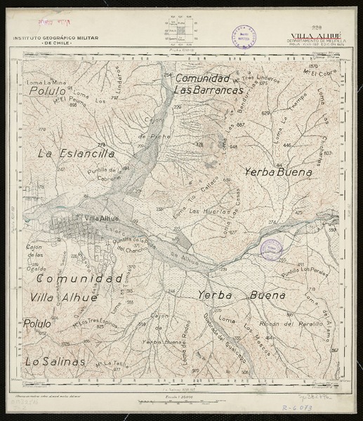 Villa Alhué Departamento de Melipilla [material cartográfico] : Instituto Geográfico Militar de Chile.