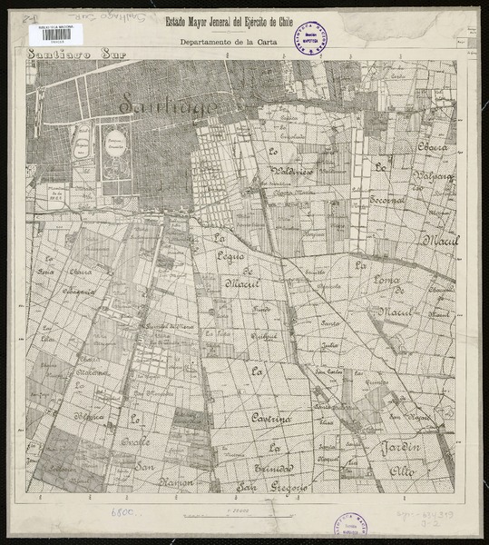 Santiago Sur [material cartográfico] Estado Mayor Jeneral del Ejército de Chile, Departamento de la Carta.
