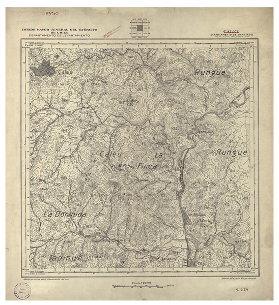 Caleu Departamento de Santiago [material cartográfico] : Estado Mayor Jeneral del Ejército de Chile, Departamento de Levantamiento.
