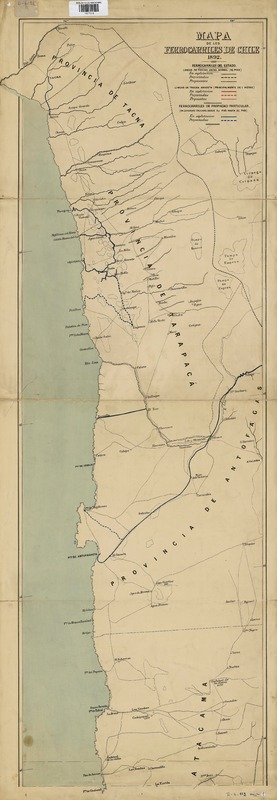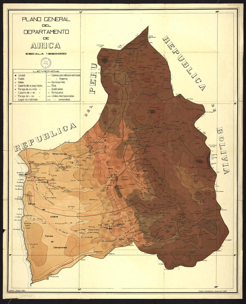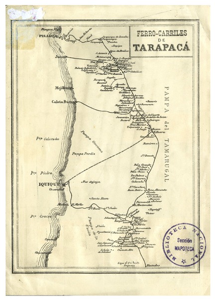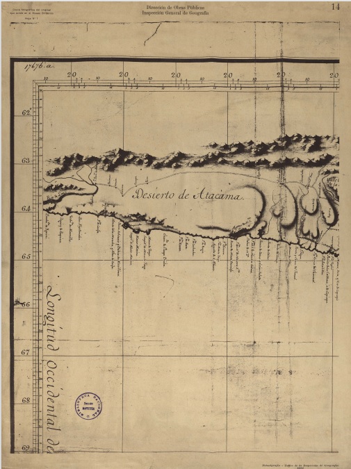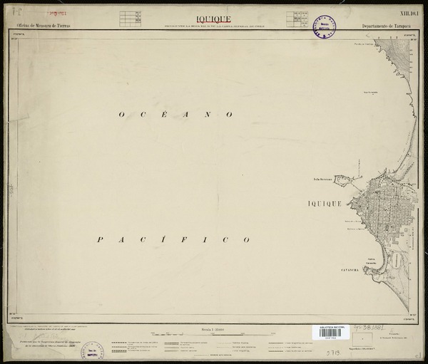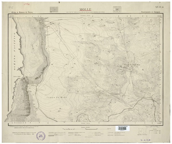 Tarapacá sección "a" de la hoja XIV.11 de la Carta Jeneral de Chile, Departamento de Tarapacá [material cartográfico] : Oficina de Mensura de Tierras ; topógrafo M. Rodríguez, 1914.