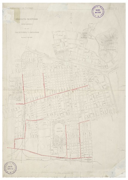 Alcantarillado de Santiago proyecto Roufosse: disposición de los colectores y emisarios. [material cartográfico] :