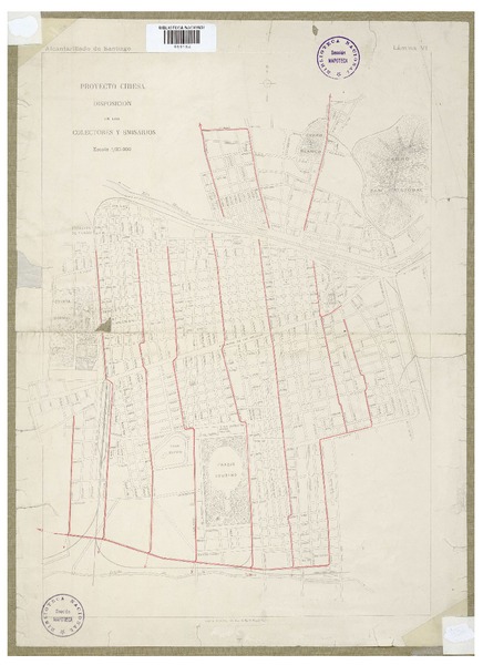 Alcantarillado de Santiago: proyecto Chiesa: disposición de los colectores y emisarios. [material cartográfico] :