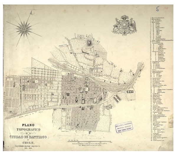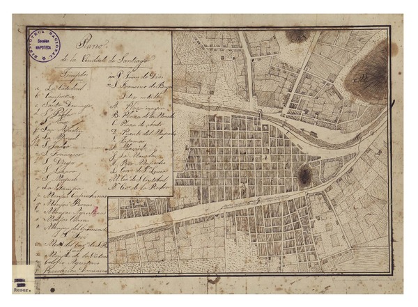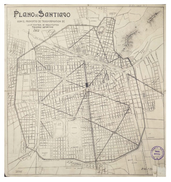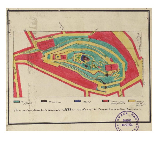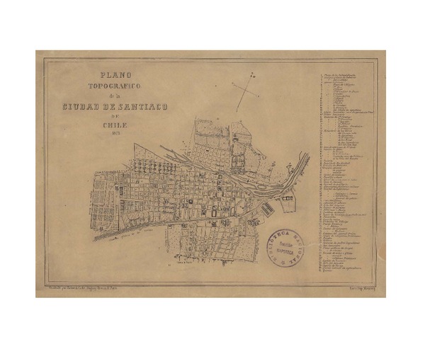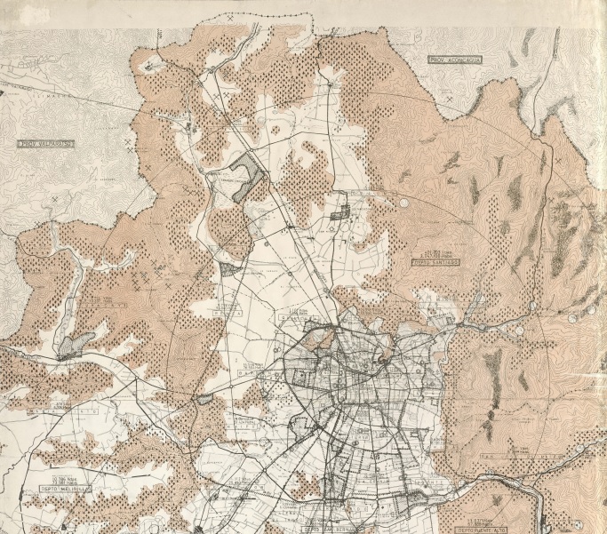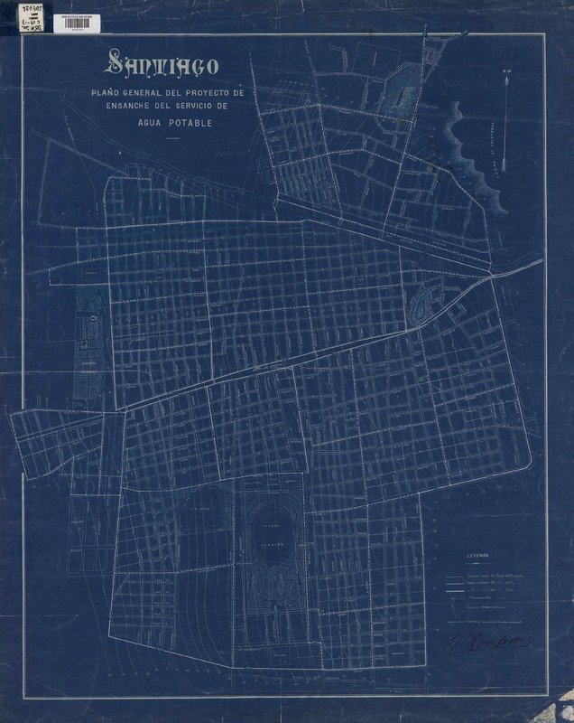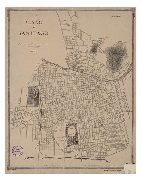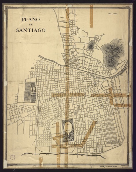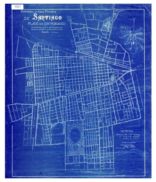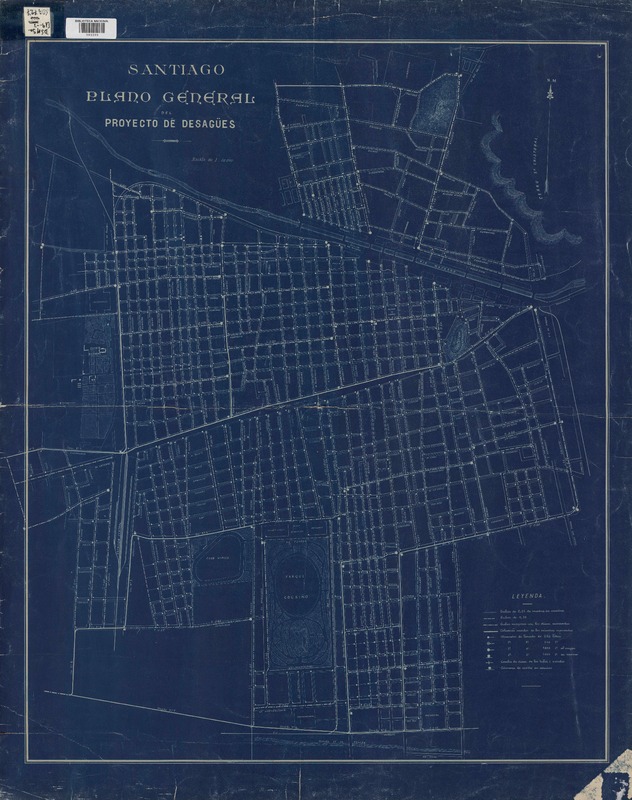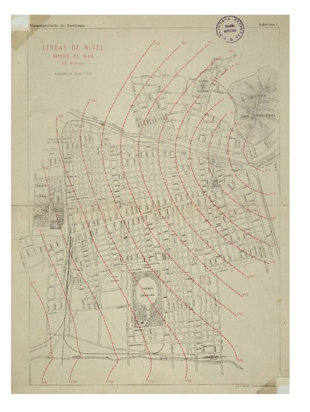 Alcantarillado de Santiago líneas de nivel sobre el mar en metros. [material cartográfico]: