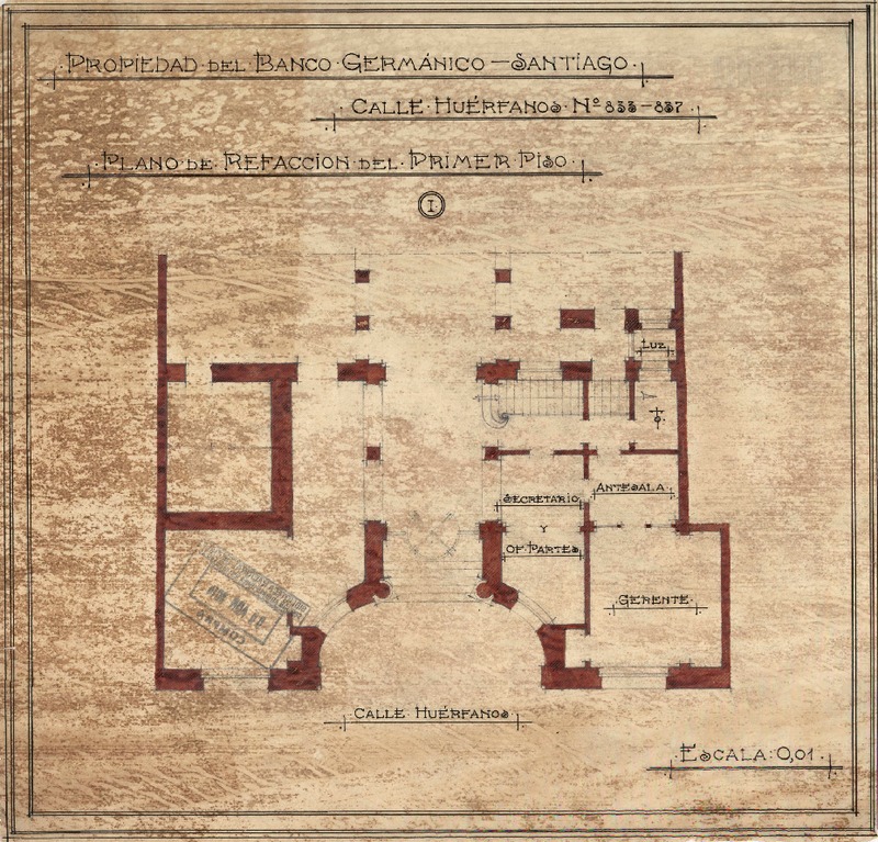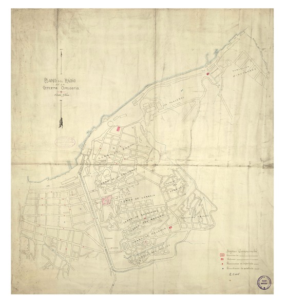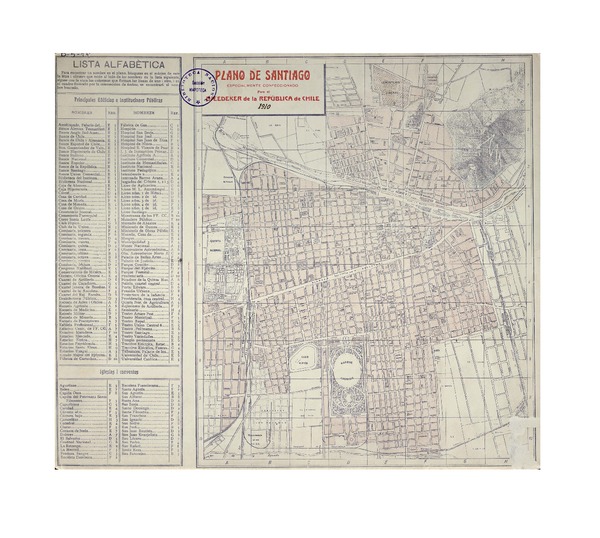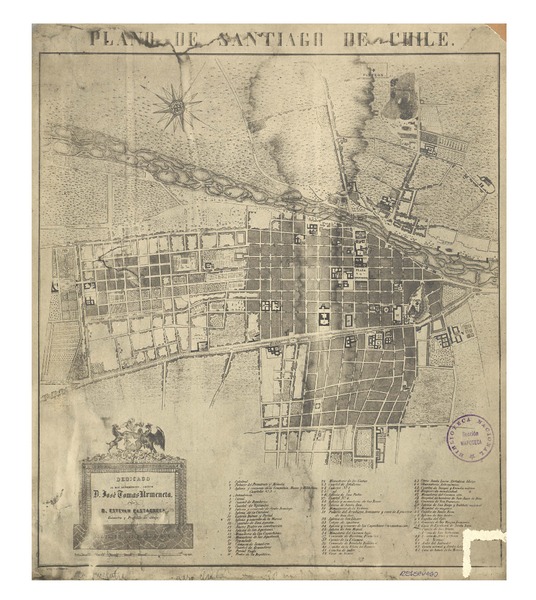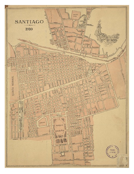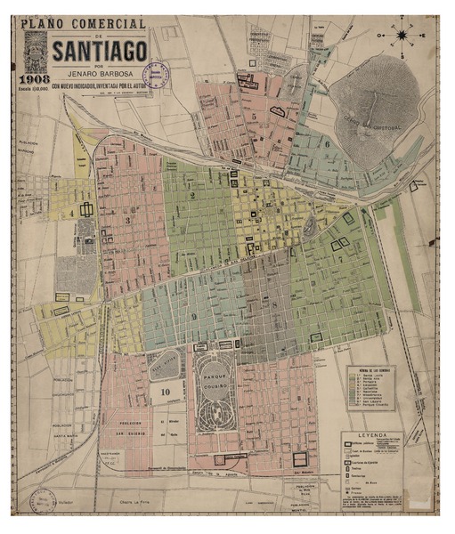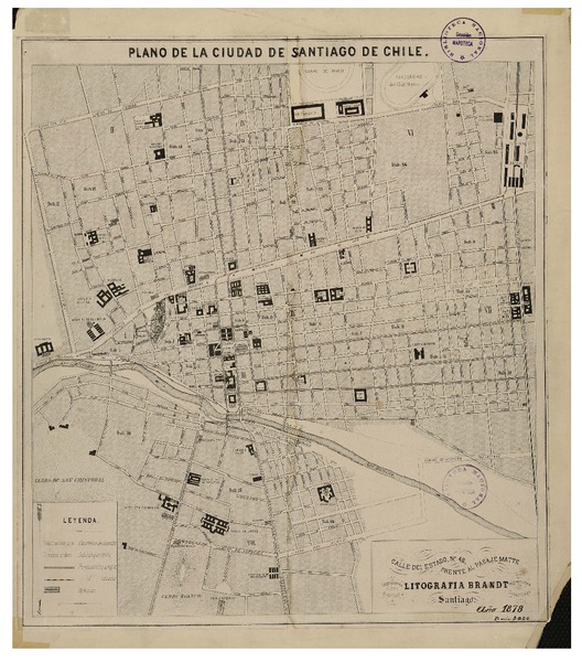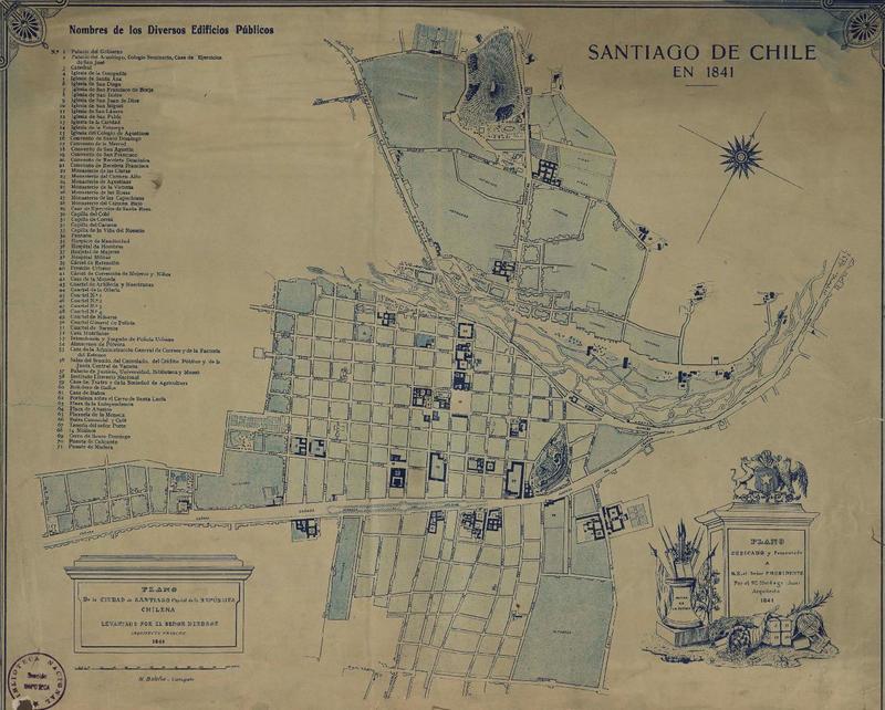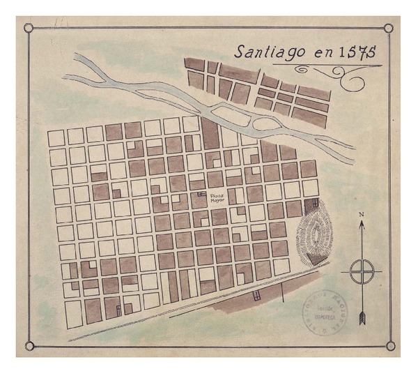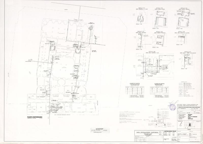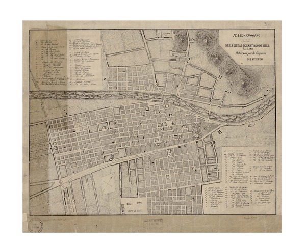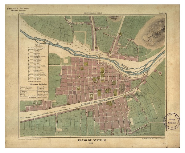 Alcantarillado de Santiago líneas de nivel sobre el mar en metros. [material cartográfico]: