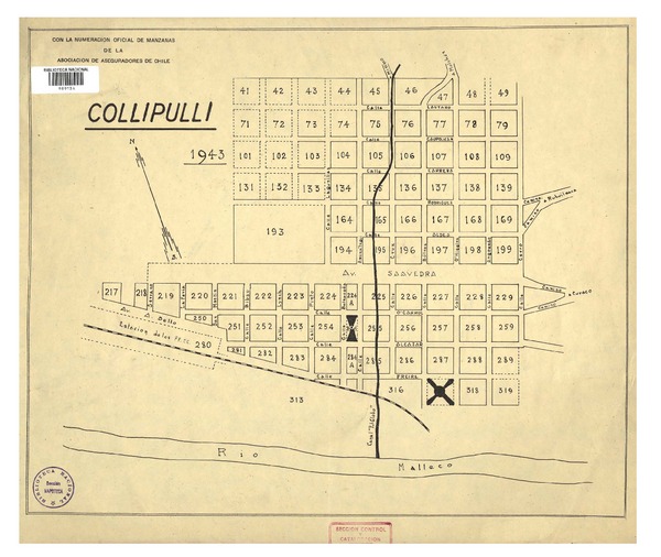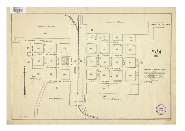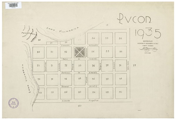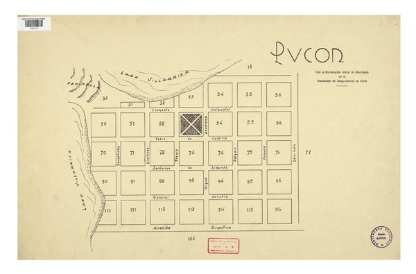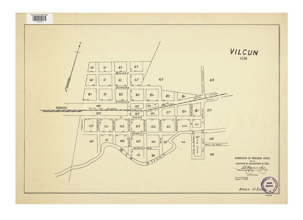Vilcún numeración de manzanas oficial [material cartográfico] : de la Asociación de Aseguradores de Chile.