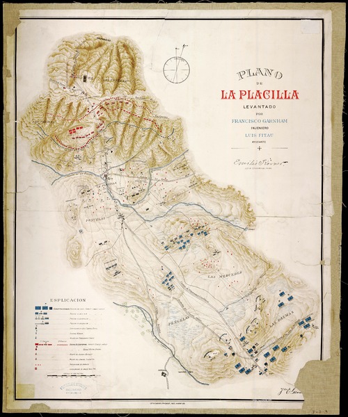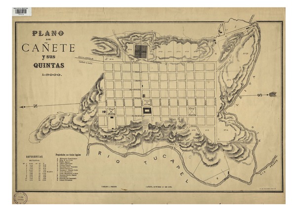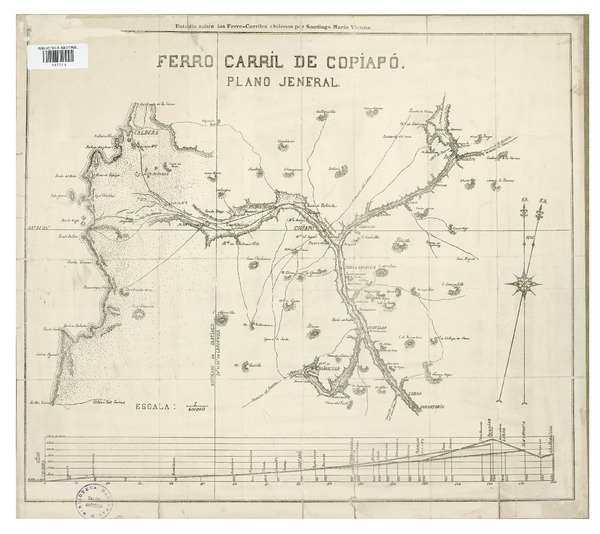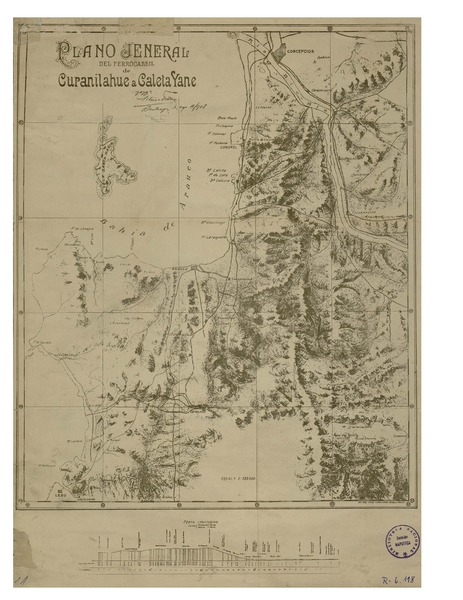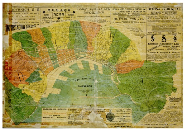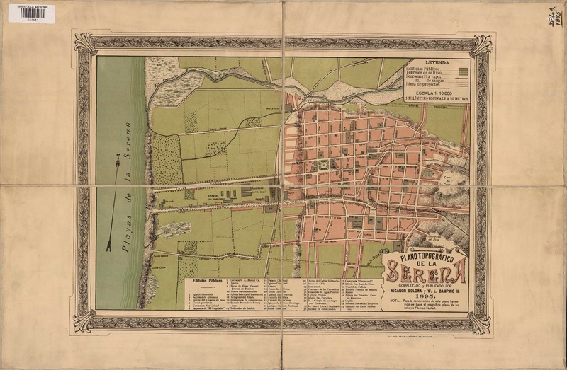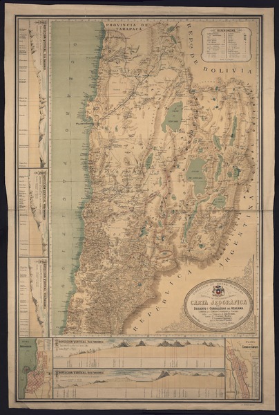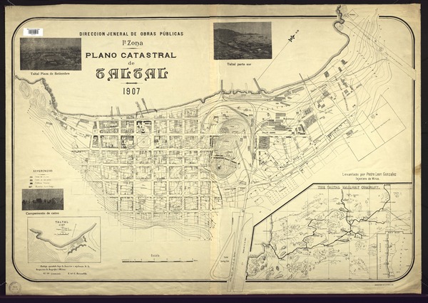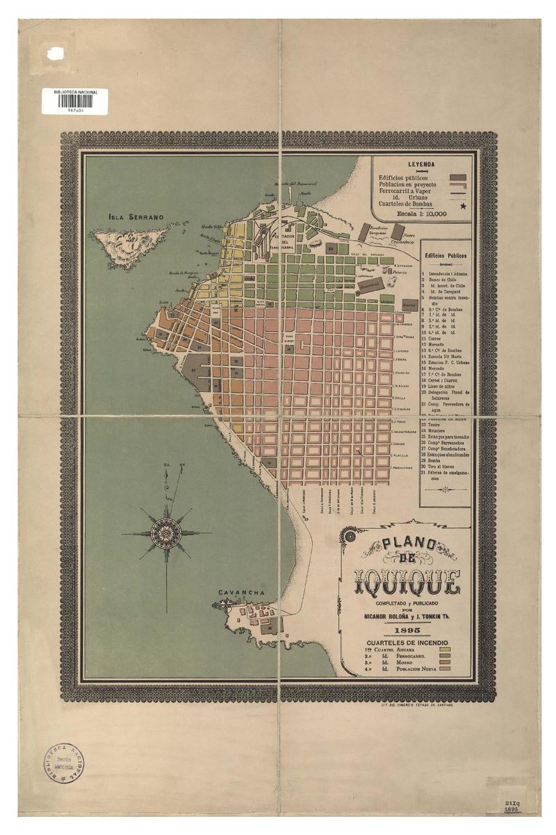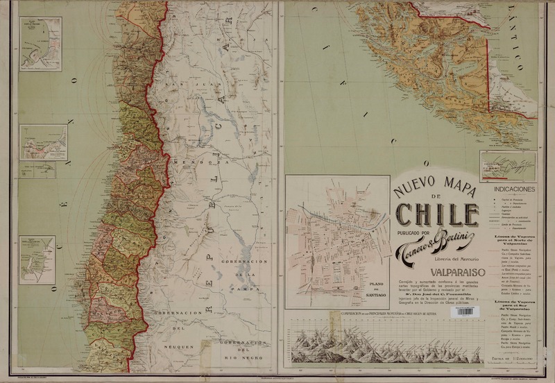 Albúm de planos de las principales ciudades y puertos de Chile [material cartográfico] publicados por Nicanor Boloña, cartográfo de la Oficina de Geografía y Minas de la Dirección General de Obras Públicas.