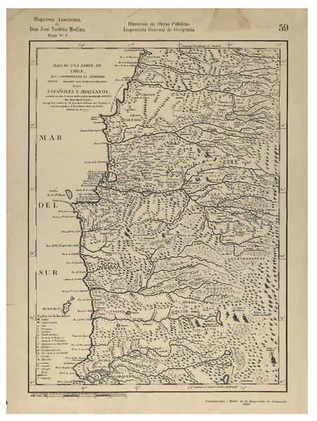 Cuenta con más de 3.000 títulos de mapas, planos y atlas chilenos, sobre la cartografía republicana.