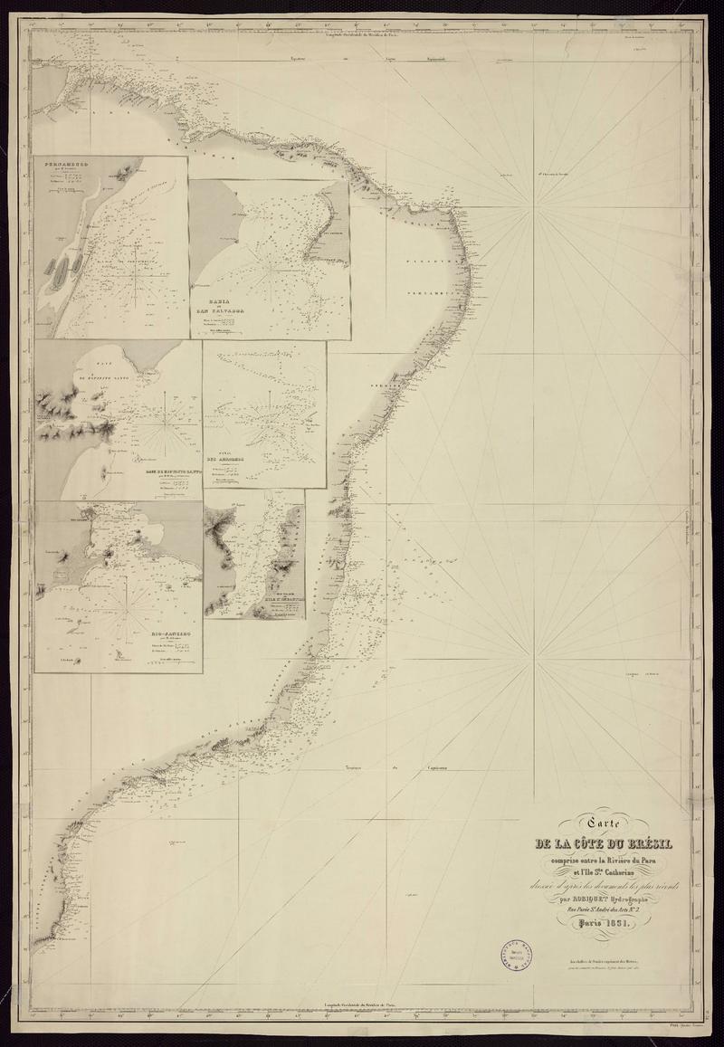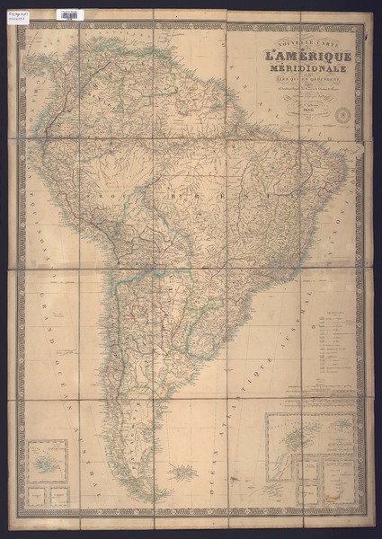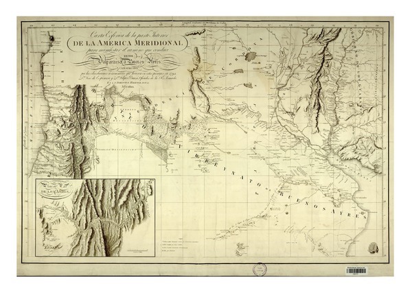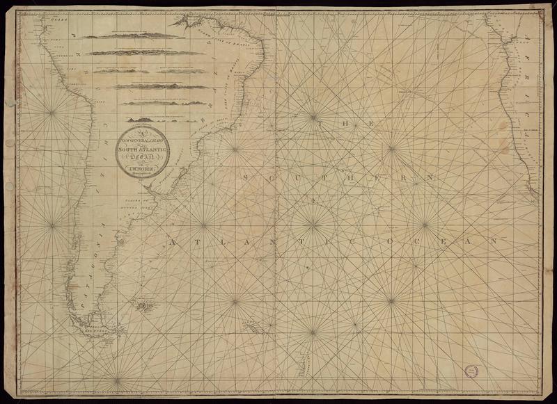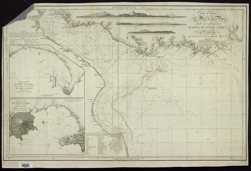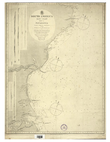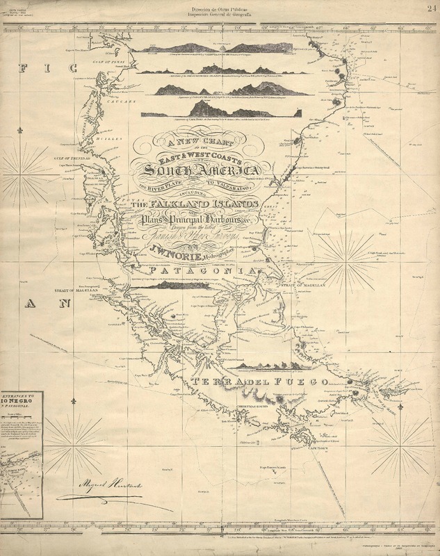 A new chart of the east & west coasts of South America from the River Plate to Valparaiso including the Falkland islands and plans of the principal harbours [material cartográfico] : drawn form the latest spanish & other surveys by J.W. Norie, hydrographer.