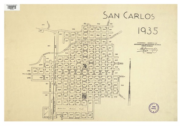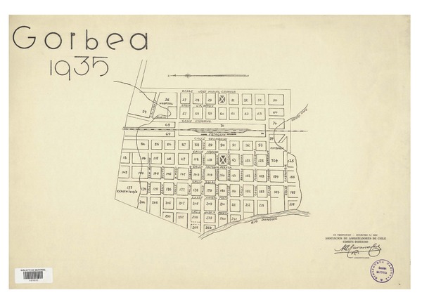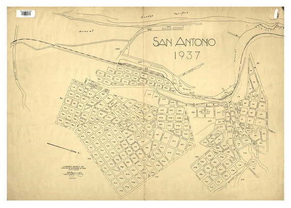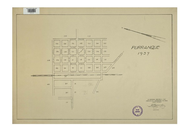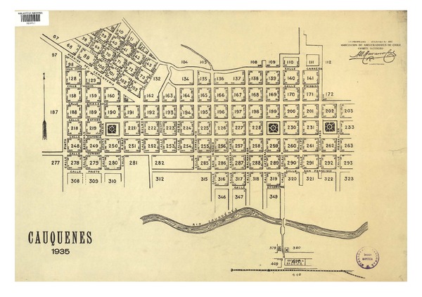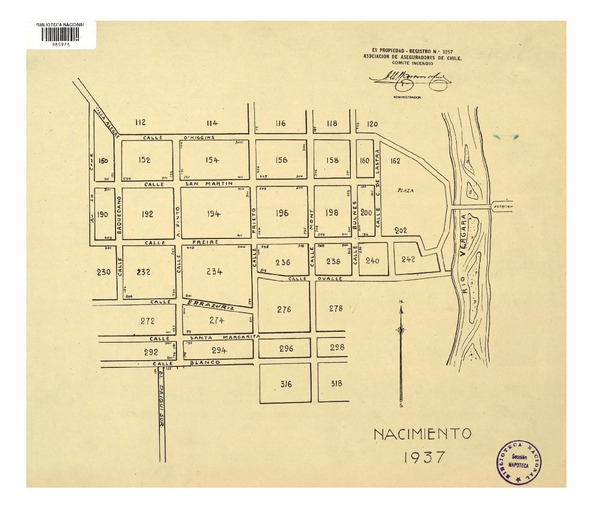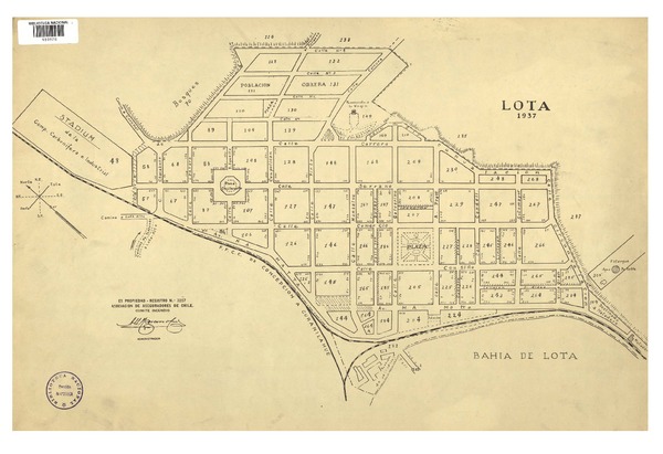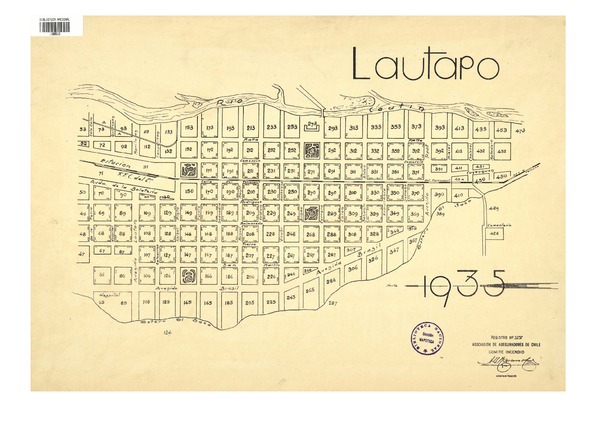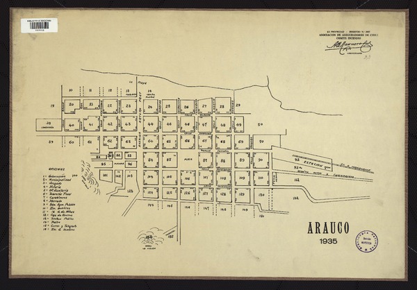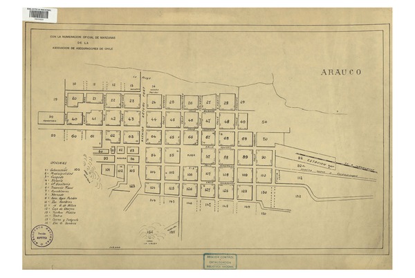 Arauco con la numeración oficial de manzanas [material cartográfico] : de la Asociación de Aseguradores de Chile.