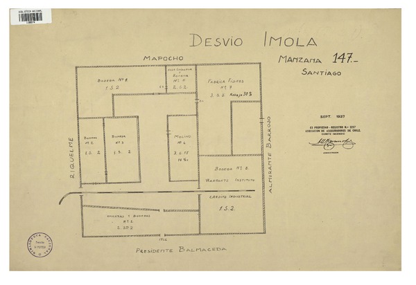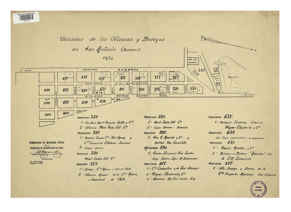 Ubicación de las oficinas y bodegas en San Antonio (Barranca) [material cartográfico] : numeración de manzanas oficial