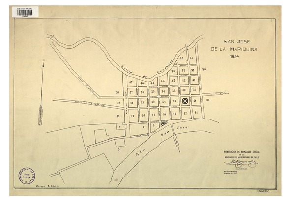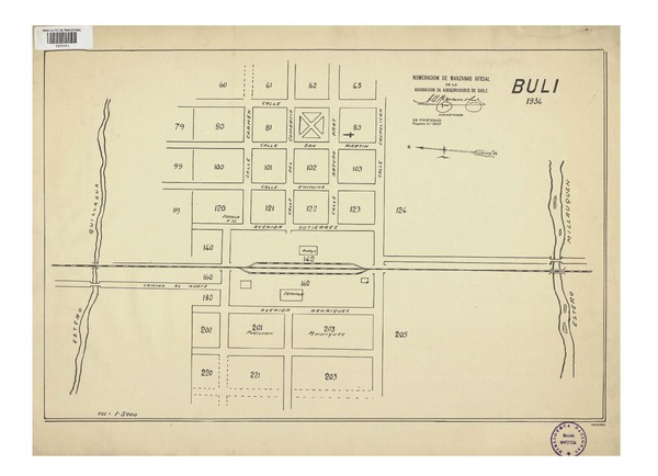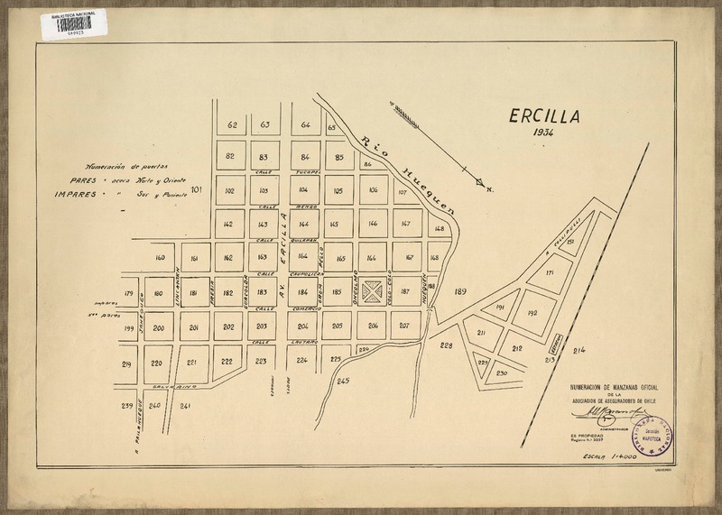 Traigven numeración de manzanas oficial [material cartográfico] : de la Asociación de Aseguradores de Chile.