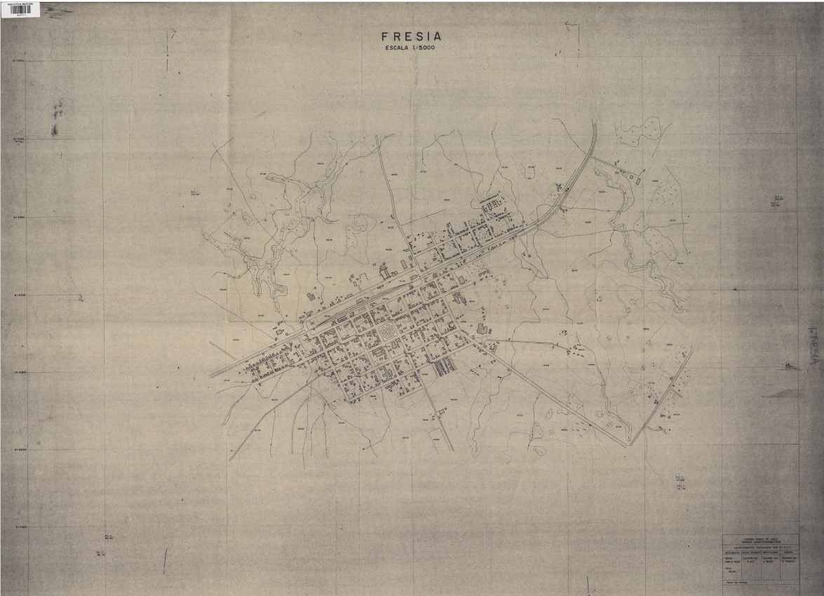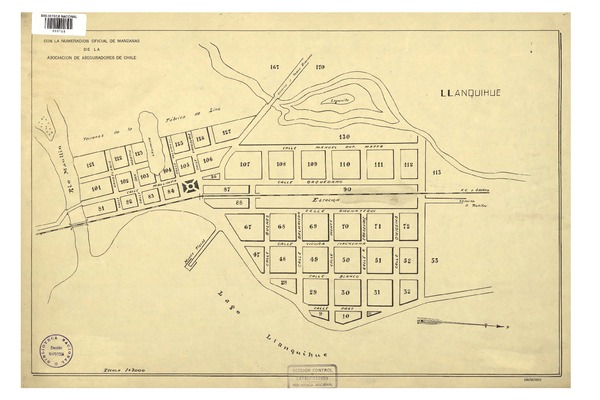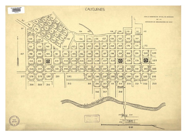 Traiguén con la numeración oficial de manzanas [material cartográfico] : de la Asociación de Aseguradores de Chile.