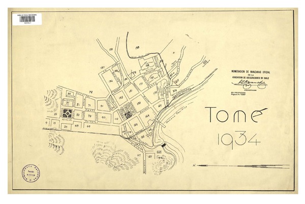 Tomé numeración de manzanas oficial [material cartográfico] : de la Asociación de Aseguradores de Chile.