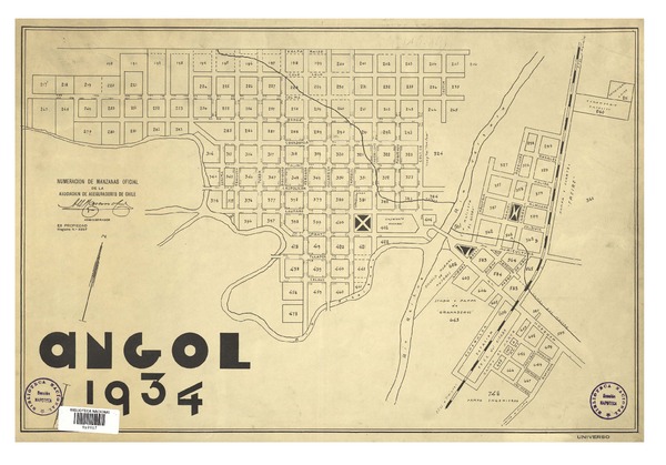 Angol numeración de manzanas oficial [material cartográfico] : de la Asociación de Aseguradores de Chile.