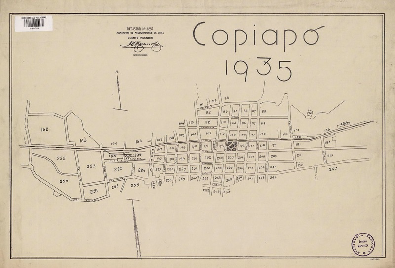 Vallenar con la numeración oficial de manzanas [material cartógrafico] : de la Asociación de Aseguradores de Chile.