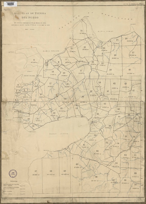Territorio nacional de Tierra del Fuego plano demostrativo del estado de la tierra [material cartográfico] : Dirección general de Tierras.