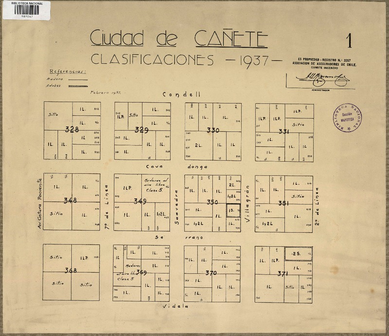 Vallenar numeración de manzanas oficial [material cartográfico] : de la Asociación de Aseguradores de Chile.