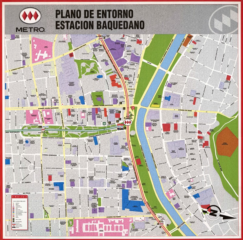 Santa Lucía (Santiago, Chile) - San Lázaro (Santiago, Chile) - Santa Ana (Santiago, Chile) - Portales (Santiago, Chile) - Estación (Santiago, Chile) - Cañadilla (Santiago, Chile) - Maestranza (Santiago, Chile) - Universidad (Santiago, Chile) - Planos - Parque Cousiño (Santiago, Chile) - Recoleta (Santiago, Chile)
