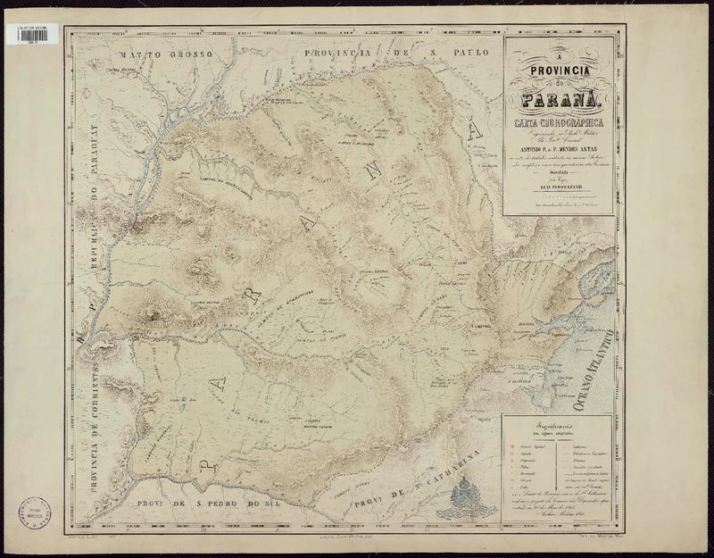 A Provincia do Paraná carta chorographica [material cartográfico] : lorganisada no Archo Militar pelo Tente. Coronel Antonio P. de F. Mendes Antas dezenhada pelo Capm. Luiz Pedro Lecor.