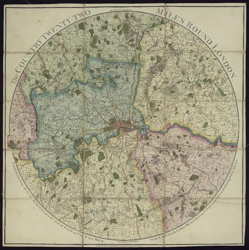 The country twenty two miles around london compiled from actual surveys, on a scale of half an inch the mile. [material cartográfico]