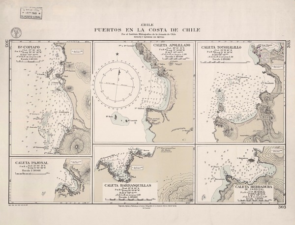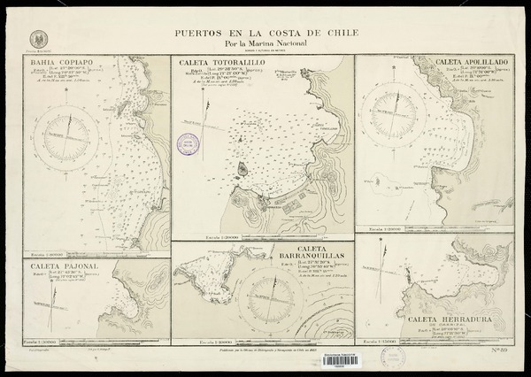 Bahía Mejillones del sur a Puerto de Caldera [material cartográfico] por el Instituto Hidrográfico de la Armada de Chile.