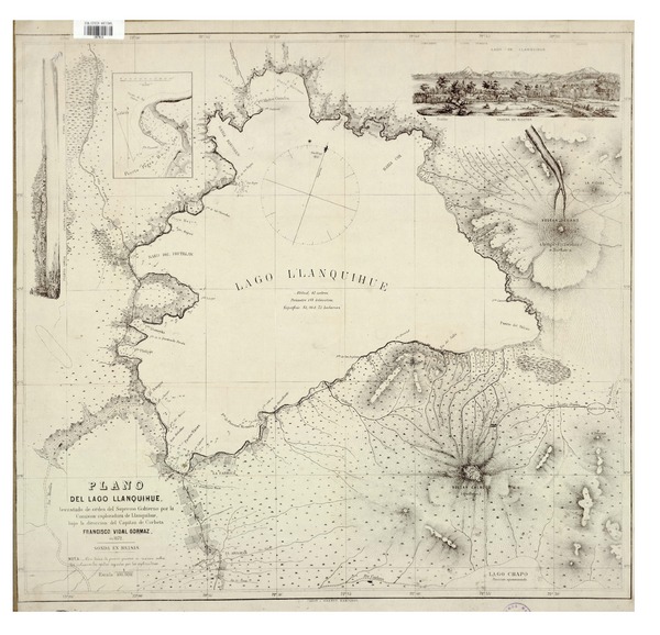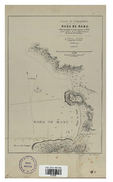 Rada de Ranu Costa de Llanquihue [material cartográfico] : plano levantado de Orden Suprema, en 1870, por el Cn. Go. de Ca. D. Fco. Vidal Gormaz i los oficiales del Covadonga.