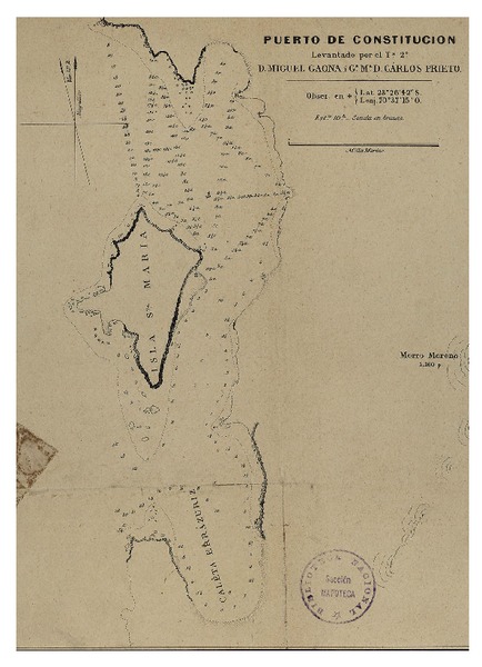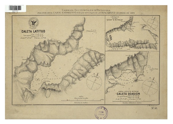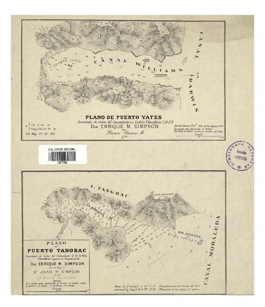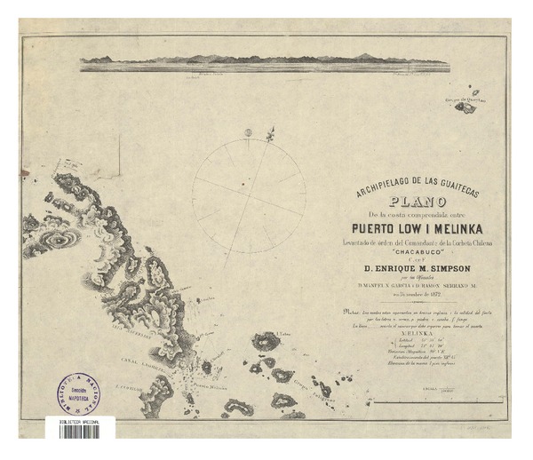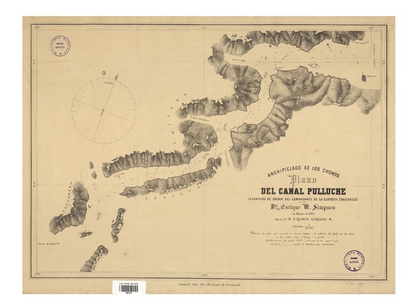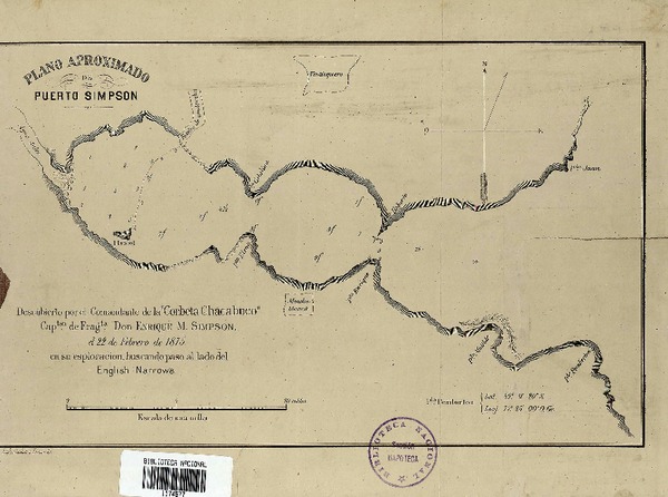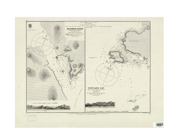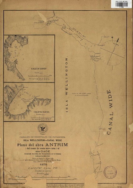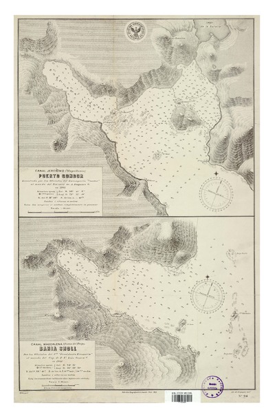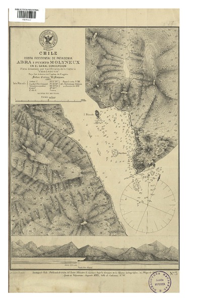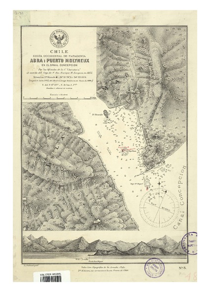 Abra i puerto Molyneux en el canal Concepción costa occidental de Patagonia [material cartográfico] : por los Oficiales de la C. "Chacabuco" al mando del Cap. de F. Don Enrique M. Simpson en 1875.