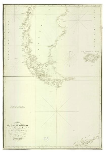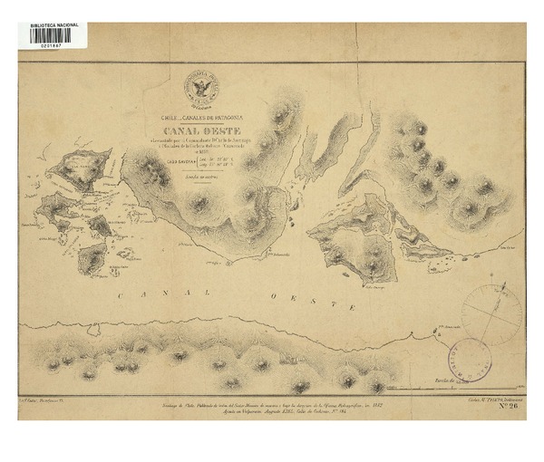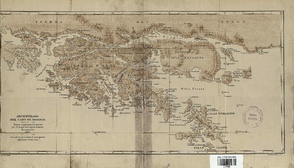 Archipiélago del Cabo de Hornos rejión esplorada i levantada por el buque hidrógrafo francés Romanche 1883 : tomado de las cartas de navegación inglesas i francesas. [material cartográfico] :