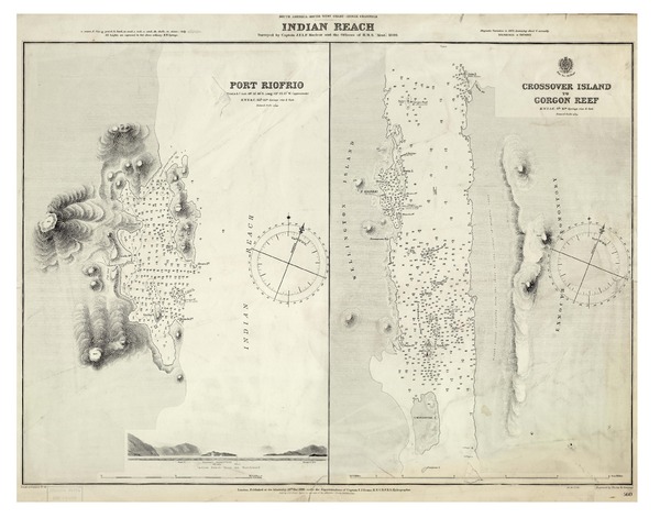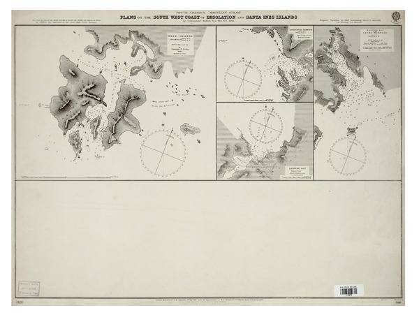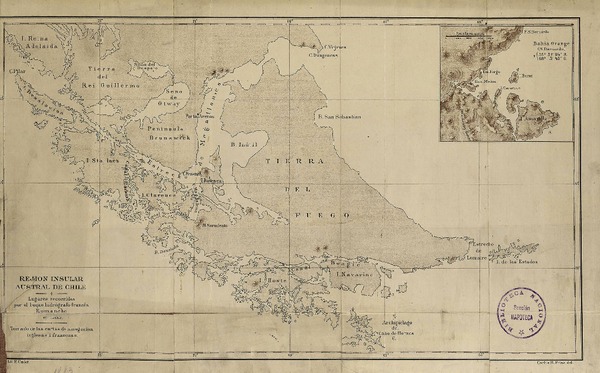 Rejión insular austral de Chile lugares recorridos por el buque hidrógrafo francés Romanche en [1883] : tomado de las cartas de navegación inglesas i francesas. [material cartográfico] :