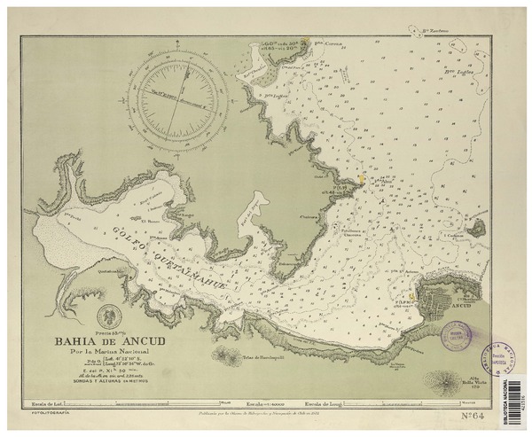 Bahía de Ancud [material cartográfico] por el Instituto Hidrográfico de la Armada de Chile.