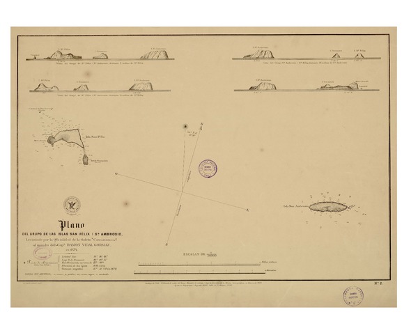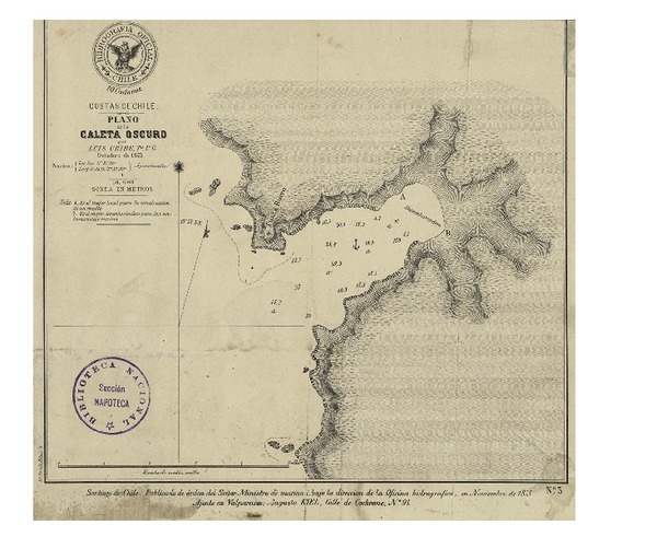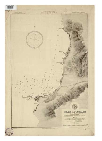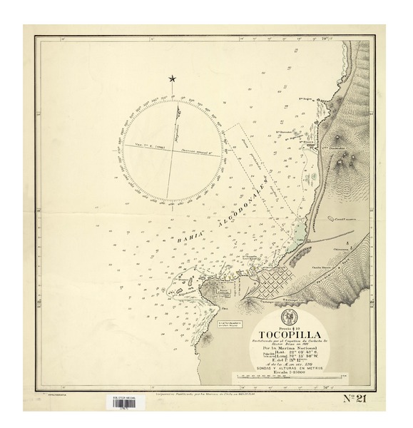 Rada Tocopilla [material cartográfico] levantado por el Cap. de fragata don Luis Pomar i los oficiales de la cañonera Pilcomayo Ten. 1° don A. Silva V. i G.M. de 1a. clase don E.J. Garín, 1885.