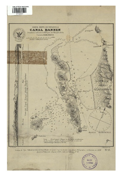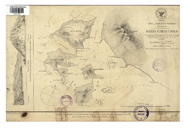 Bahía Caracciolo canales de Patagonia : Canal Oeste [material cartográfico] : levantado por el Comandante D. Carlo de Amezaga i Oficiales de la Corbeta italiana "Caracciolo" en 1882.