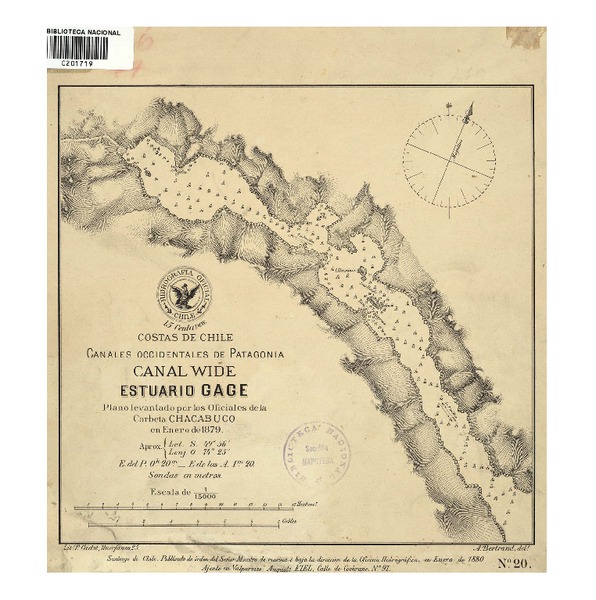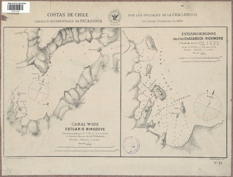 Aguas de Skyring Estrecho de Magallanes [material cartográfico] : trabajos de los oficiales de la Corbeta Magallanes al mando del Capitán J. J. Latorre, 1877-1879.