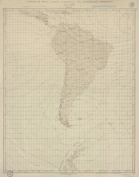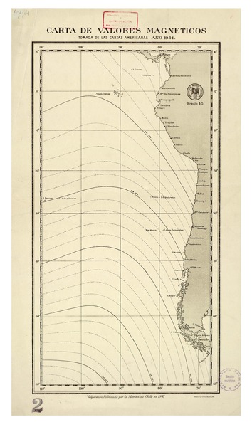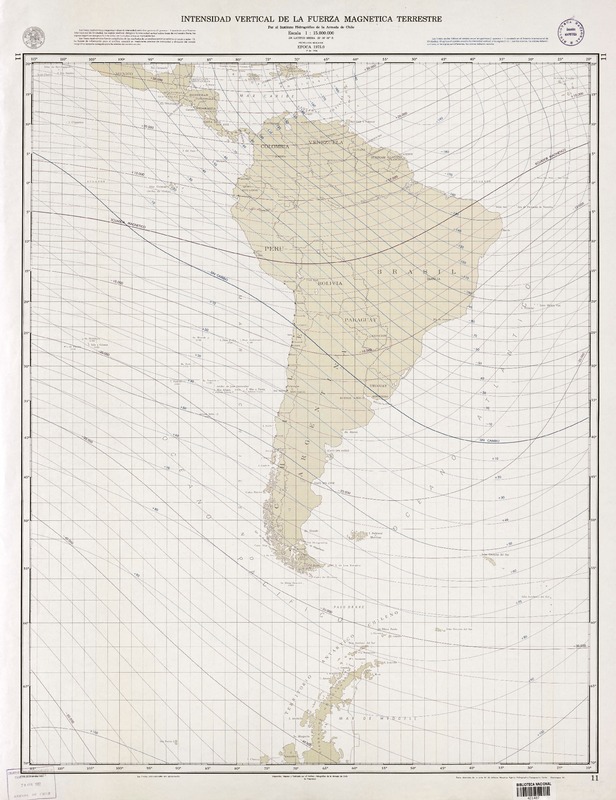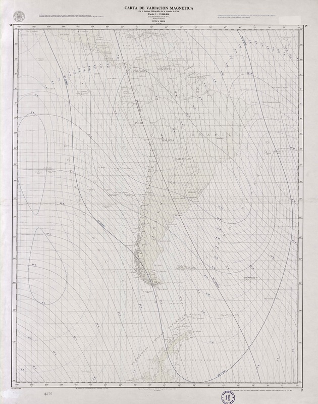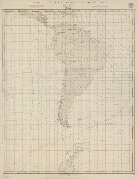 Valores de variación magnética y cambio anual época 1995.0 [material cartográfico] ; por el Servicio Hidrográfico y Oceanográfico de la Armada de Chile.