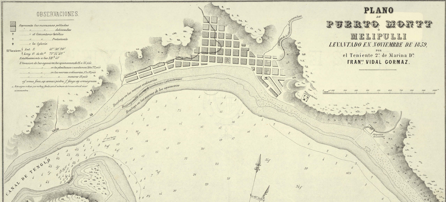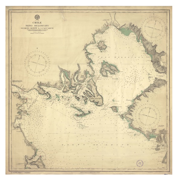 Seno Reloncaví Puerto Montt a I. Caucahue [material cartográfico] : principales hidrógrafos comandantes srs. F. Gonzaléz, F. Vidal Gormaz, R. Maldonado, I. Huerta y B. Wilson.