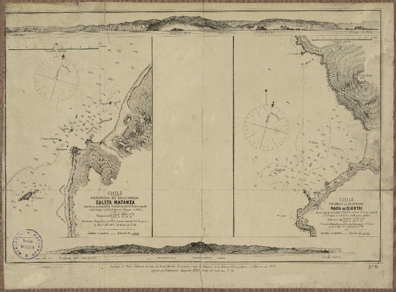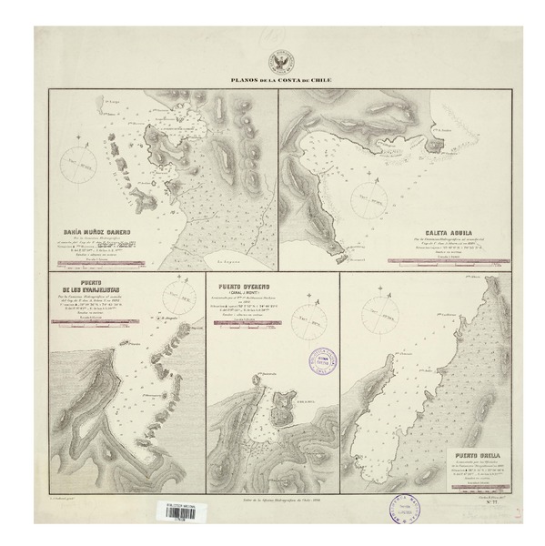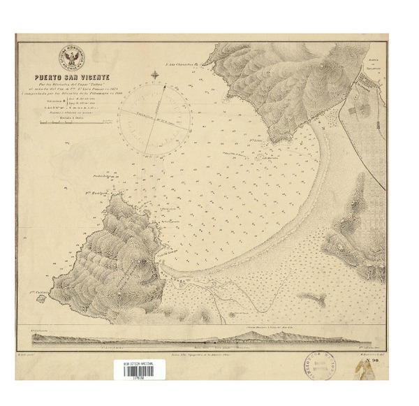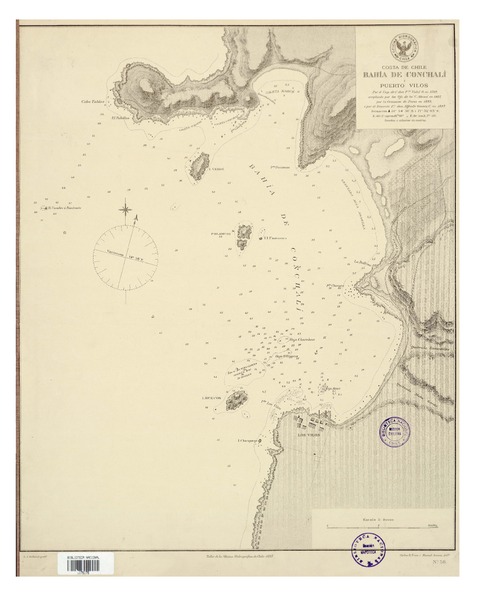 Bahía de Conchalí i Puerto Vilos costas de Chile [material cartográfico] : por el Cap. de C. don Fco. Vidal G. en 1869, ampliado por los Ofs. de la "C. Abtao" en 1887, por la Comisión de Faros 1889 i por el Teniente 1ro don Alfredo Gómez C. en 1897.