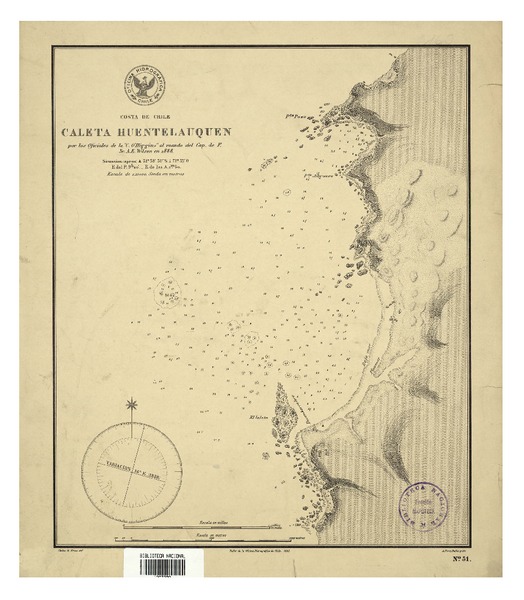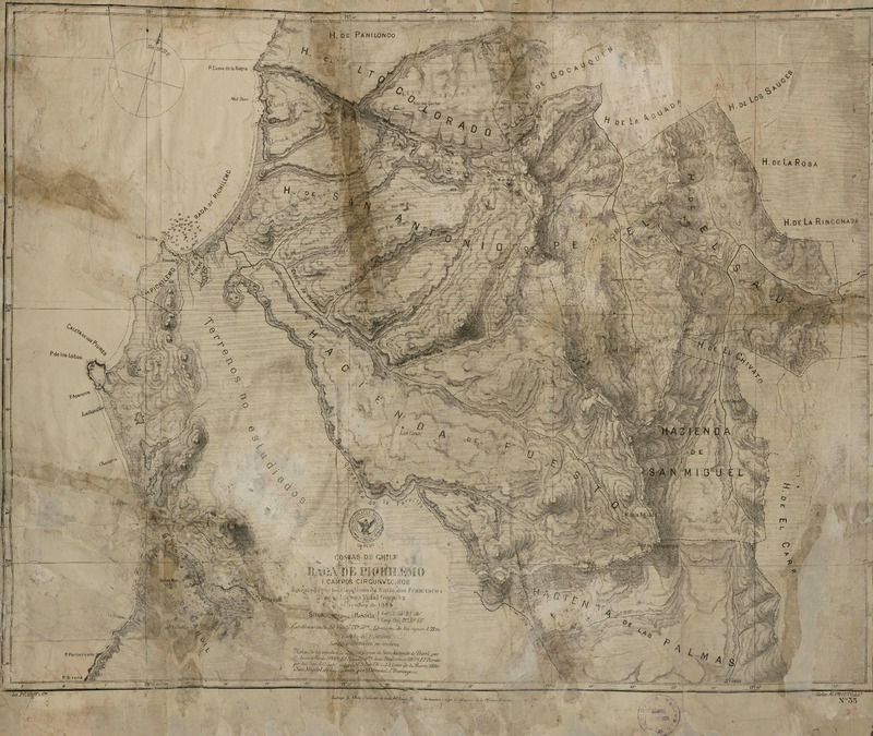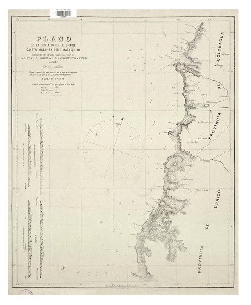 Rada de Pichilemo i campos circunvecinos costas de Chile [material cartográfico] : levantado por los Capitanes de Navio don Francisco i don Ramón Vidal Gormáz, setiembre de 1885.