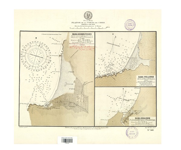 Radas Pelluhue, Curanipe y Buchupureo [material cartográfico] por el Servicio Hidrográfico y Oceanográfico de la Armada de Chile.
