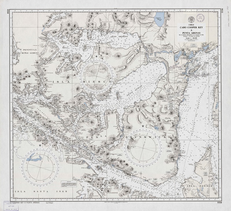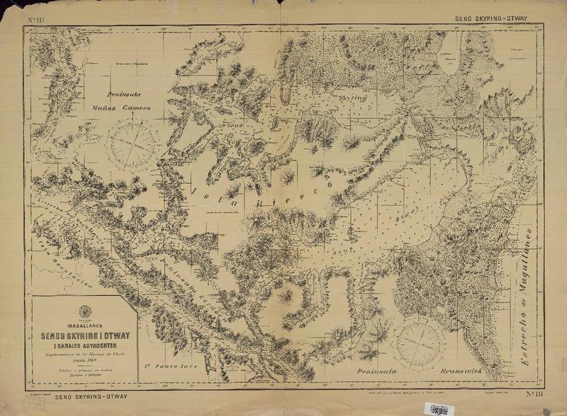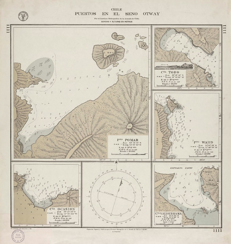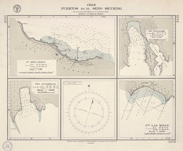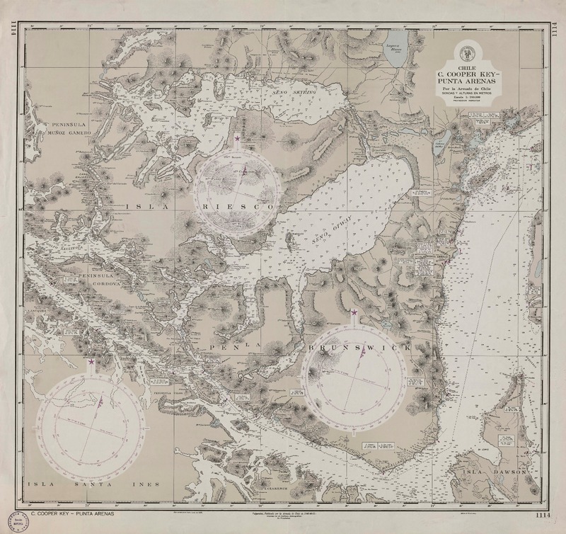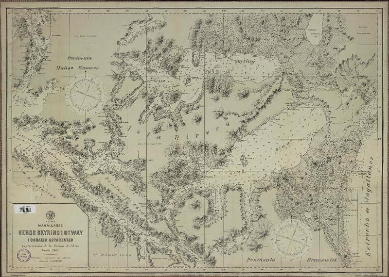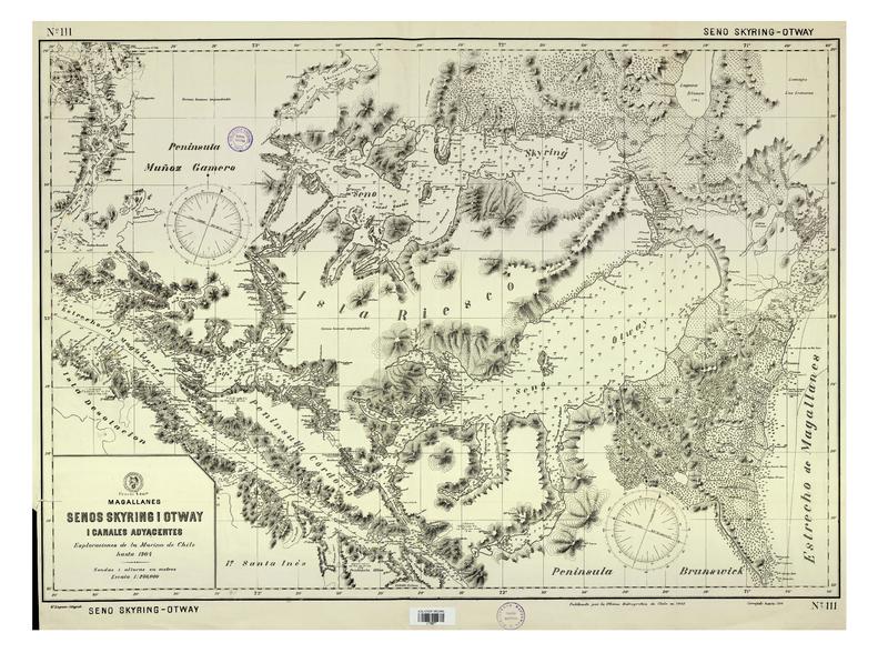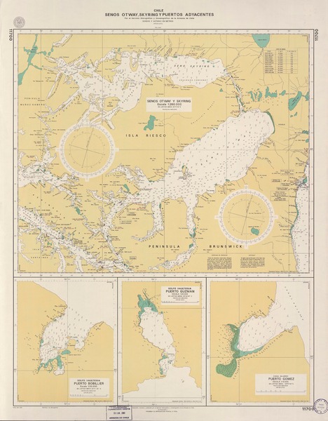 Senos Otway, Skyring y puertos adyacentes [material cartográfico] por el Servicio Hidrográfico y Oceanográfico de la Armada de Chile.