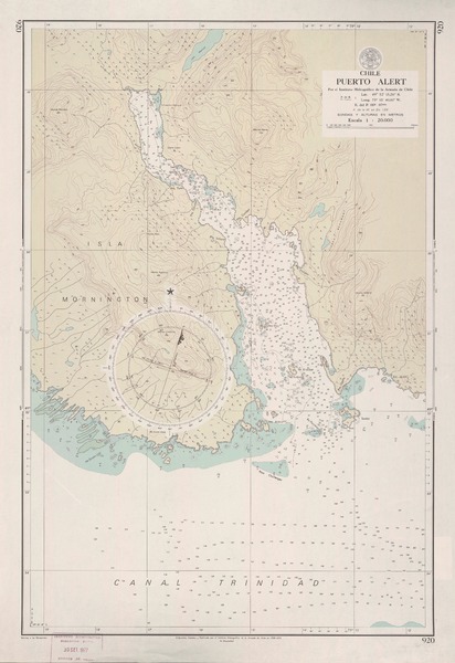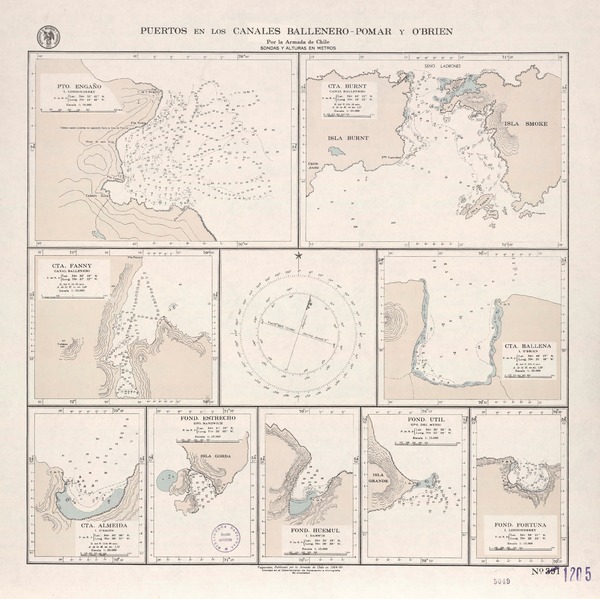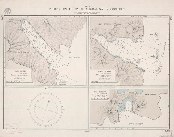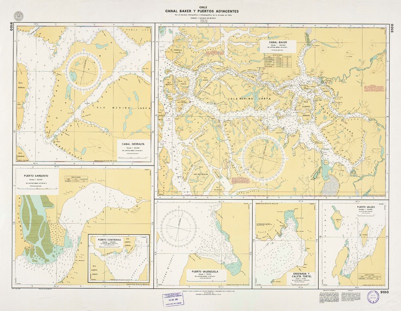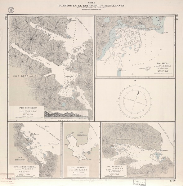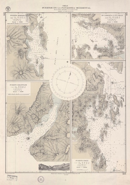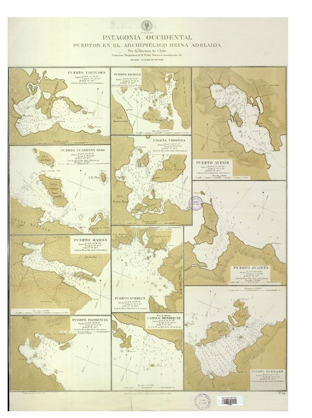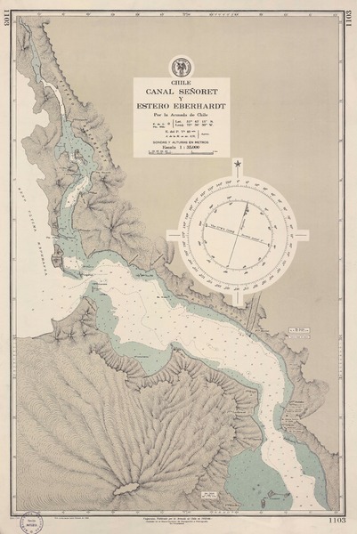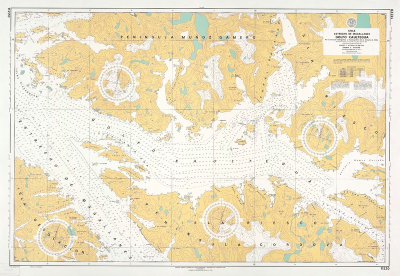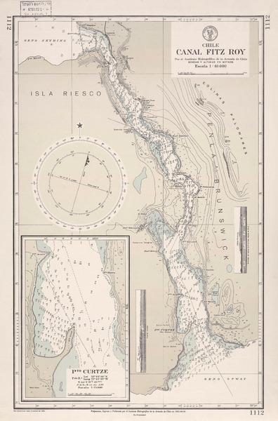 Senos Otway, Skyring y puertos adyacentes [material cartográfico] por el Servicio Hidrográfico y Oceanográfico de la Armada de Chile.