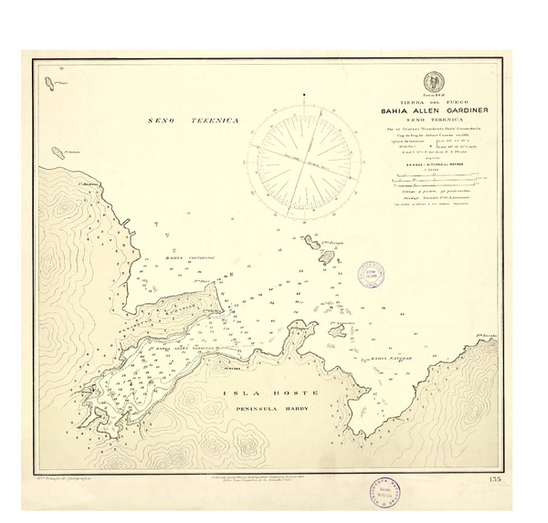 Bahía Allen Gardiner Seno Tekenica, Tierra del Fuego [material cartográfico] : por el Crucero "Presidente Pinto" Comandante Cap. de Frag. Sr. Arturo Cuevas en 1901.