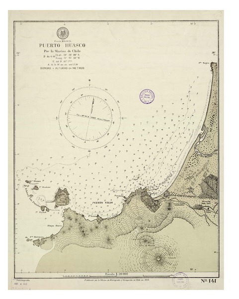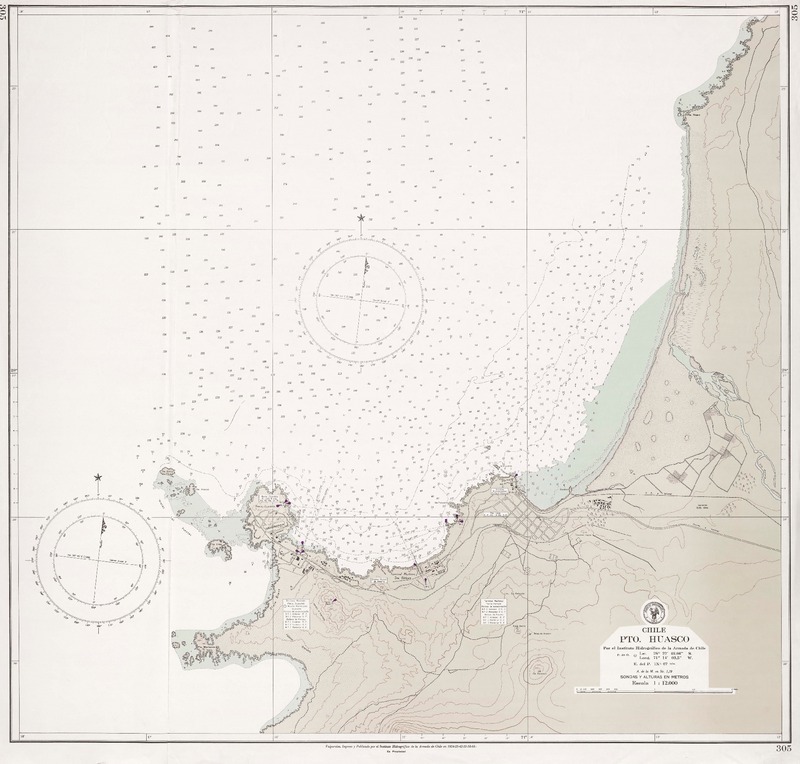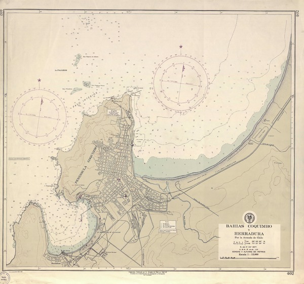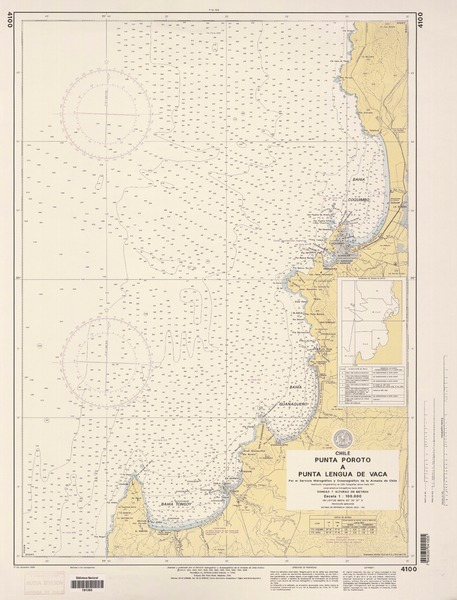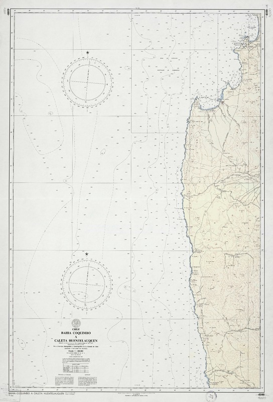 Bahía Coquimbo a Caleta Huentelauquén [material cartográfico] por el Servicio Hidrográfico y Oceanográfico de la Armada de Chile.