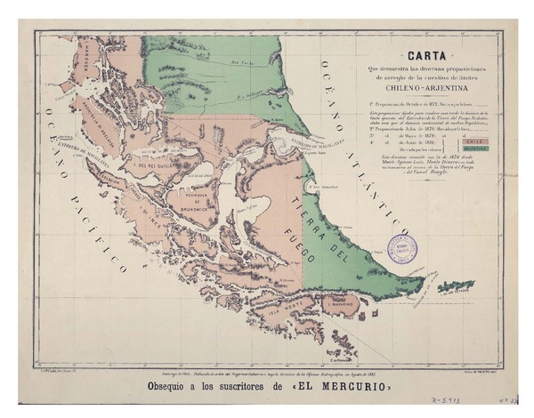 América del Sur, Costa Oeste, Chile desde el Cabo Sta. Lucía hasta la Punta Chancery [material cartográfico] : por la Marina de Chile.