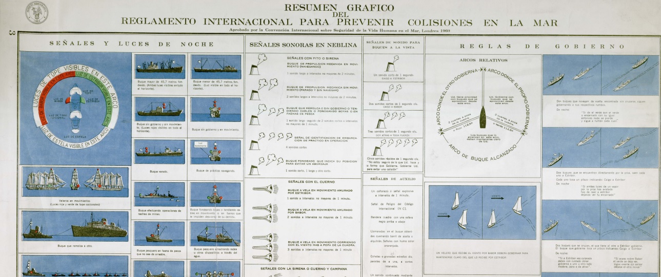 Resumen gráfico del reglamento internacional para prevenir los abordajes aprobado por la Conferencia Internacional sobre la revisión del Reglamento Internacional para prevenir los abordajes, 1972. [diagrama] :