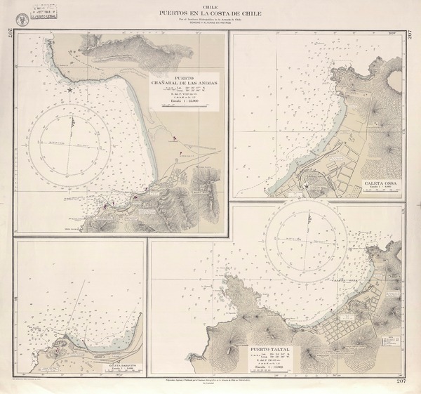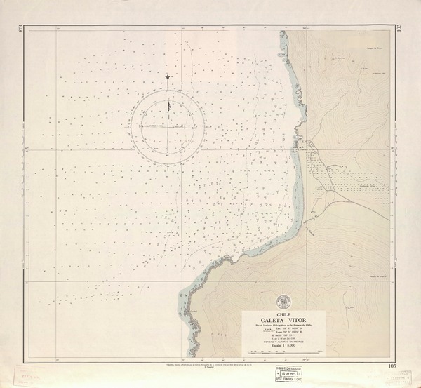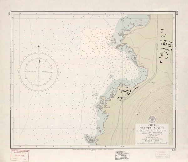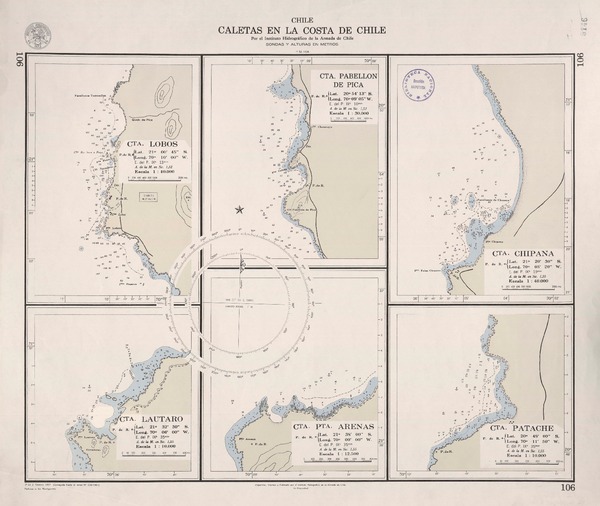 Aproximación a Caletas Patillos y Patache [material cartográfico] por el Servicio Hidrográfico y Oceanográfico de la Armada de Chile.