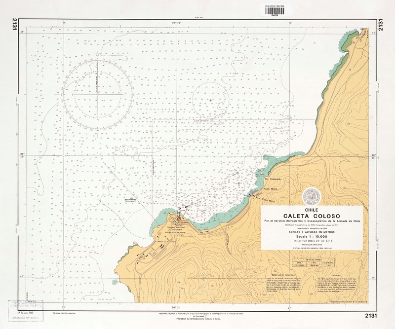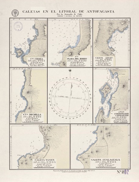 Rada Arica a Bahía Mejillones del Sur [material cartográfico] por el Servicio Hidrográfico y Oceanográfico de la Armada de Chile.